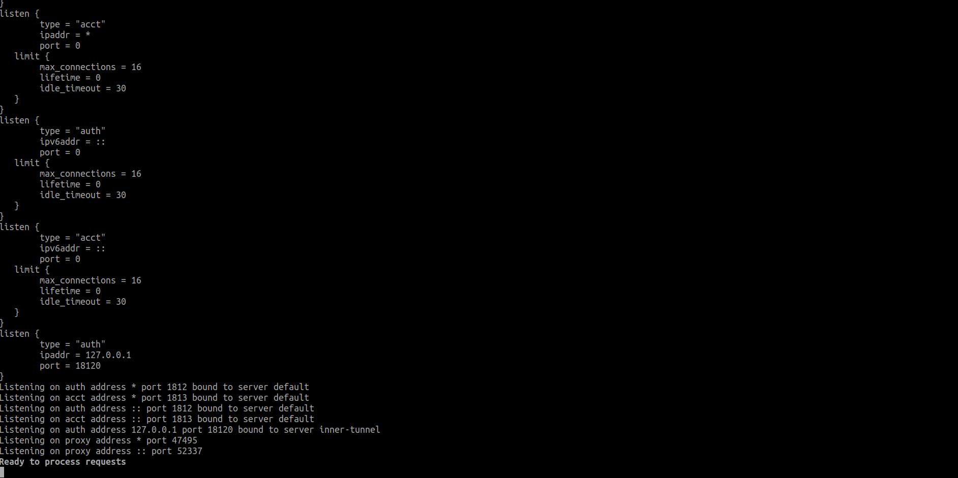 Process: 2090 ExecStartPre=/usr/sbin/radiusd -C (code=exited, status=0/SUCCESS)