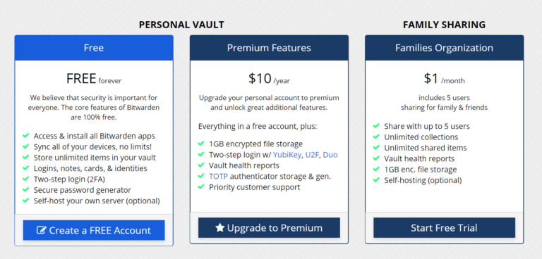 Bitwarden ကိုစပြီးတော့သုံးကတည်း personal vault ရဲ့ Premium Features ကို တစ်နှစ်ကို US $10 ပေးပြီးတော့ သုံးဖြစ်ပါတယ်။ Free ကိုအသုံးပြုလို့ ရနိုင်သော်လည်း တစ်နှစ်လုံးမှာမှ US $10 ပေးရလို့ Bitwarden ကို support လုပ်တဲ့အနေနဲ့ Premium Features တွေကို မလိုအပ်ပါနဲ့ ပေးဝယ်လိုက်ခဲ့ပါတယ်။ အခုအချိန်ထိ အသုံးပြုသလောက်တော့ အခြားအခြားသော password manager တွေထက် အများကြီး သာပြီးတော့ စျေးနှုန်းအားဖြင့်လည်းအသင့်ပဲဖြစ်တဲ့အတွက် စိတ်တိုင်းတော်တော်လေးကိုကျမိတယ်။